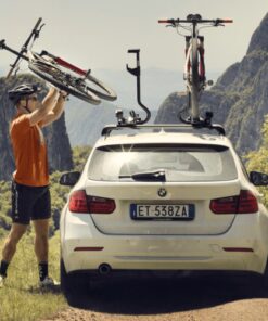 Quick and easy loading of the bike thanks to the uniquely designed frame holder & wheel tray. The torque limiter dial sends a clear signal once the bike is secured correctly. The smartly designed wheel holders firmly fix the wheels with diagonal quick-release wheel straps, preventing any wobbling during transport. Mount and secure the bike from either side of the car thanks to easy, tool-free switching of the bike carrier from one side to the other.